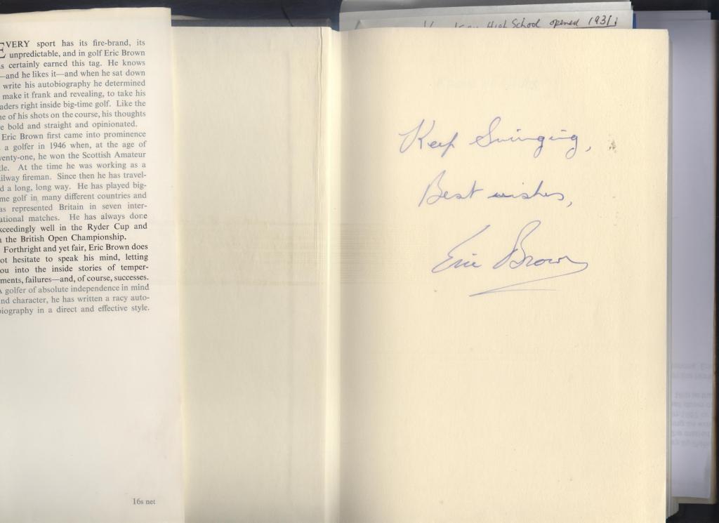 I have a copy inscribed Keep Swinging, Best wishes, Eric Brown