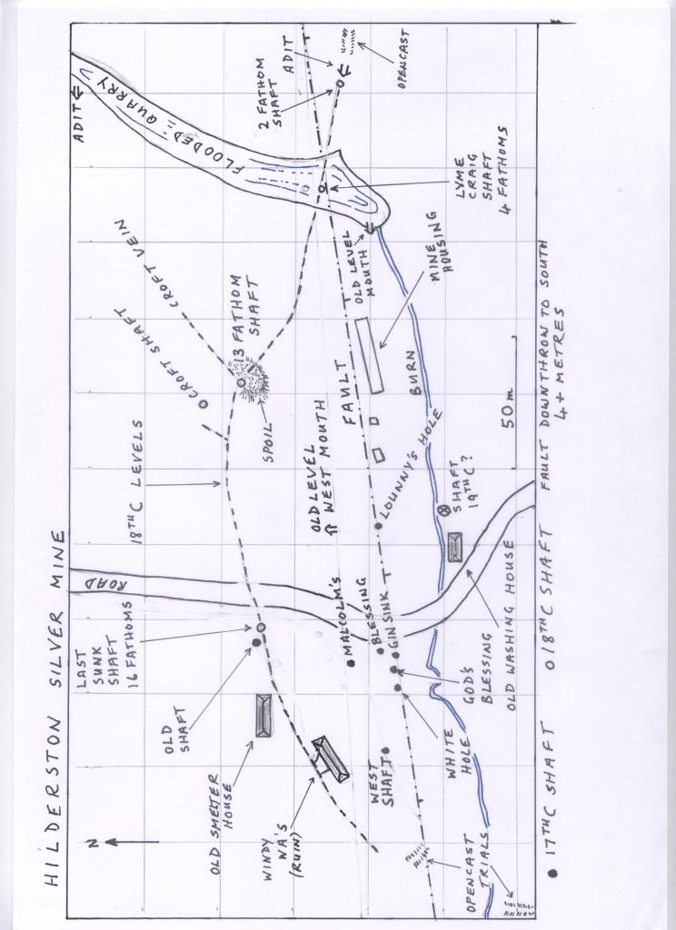 The E-W Hilderston Fault carried the original silver vein and so provided a control for the mineralisation. It is a normal fault with a throw to the south of at least