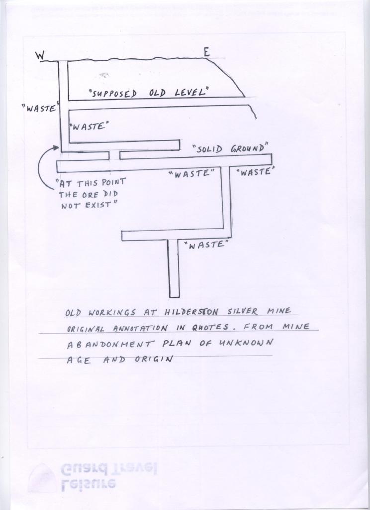 For some 150 years, the mine at Hilderstone lay undisturbed. The mineral rights had been acquired by the Earl of Hopetoun, but it was 1766 before his successors re-opened the mine. The 18th century miners found that the vein of silver had been worked out, but they mined the lead ore for a few years. In 1772, when nothing of value remained, the mine was closed up again.]